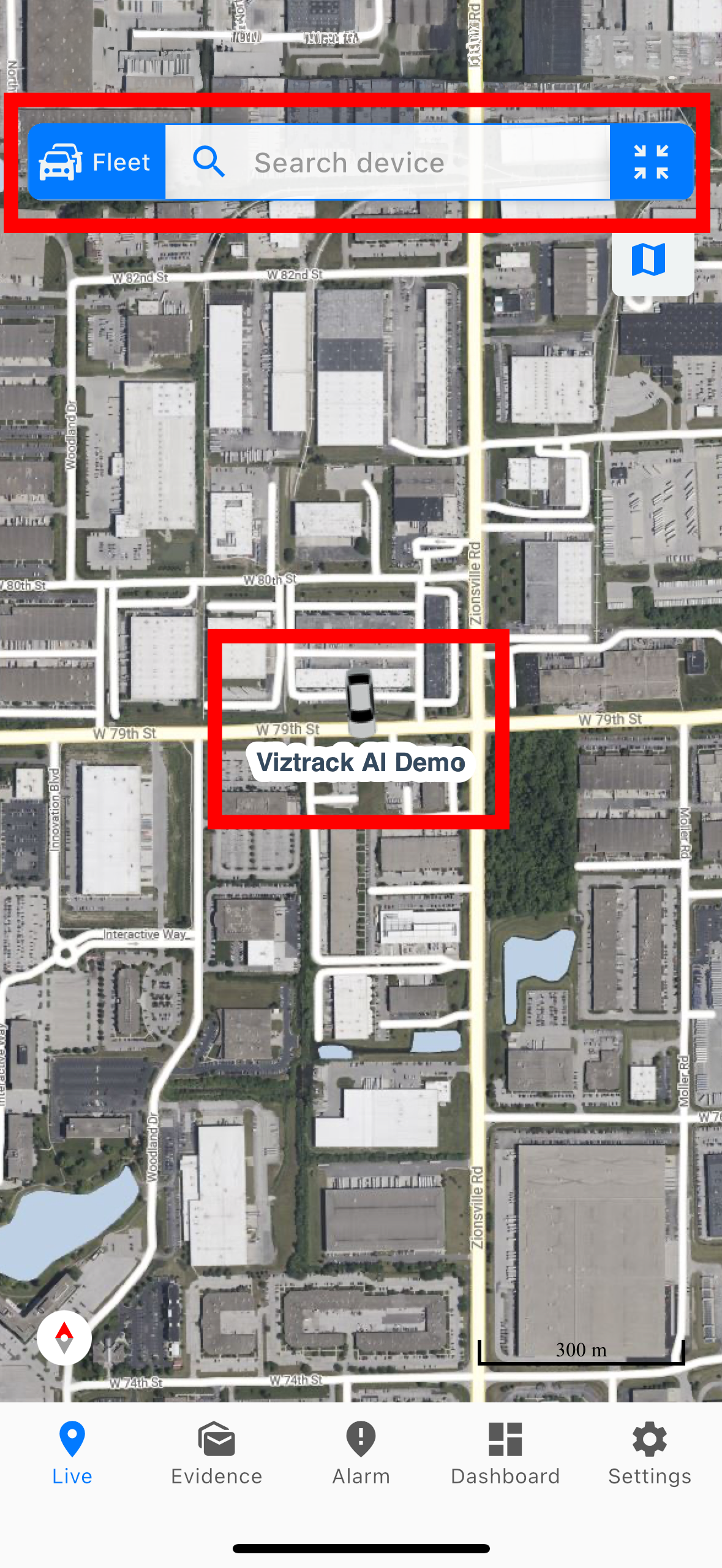 - Tap the fleet icon (top-left corner) to choose a fleet or vehicle.
