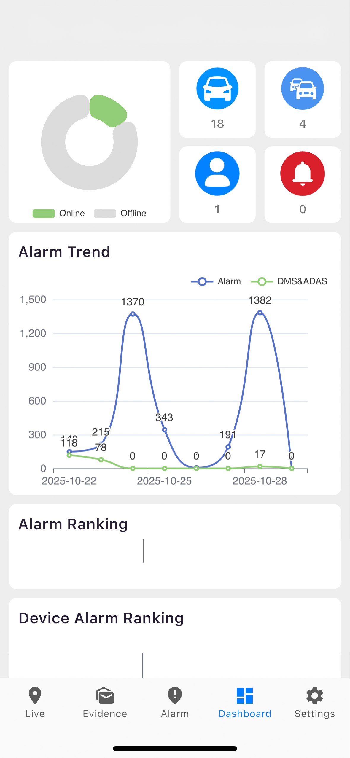 - Alarm Trend Graph: View the number of alarms triggered over time.