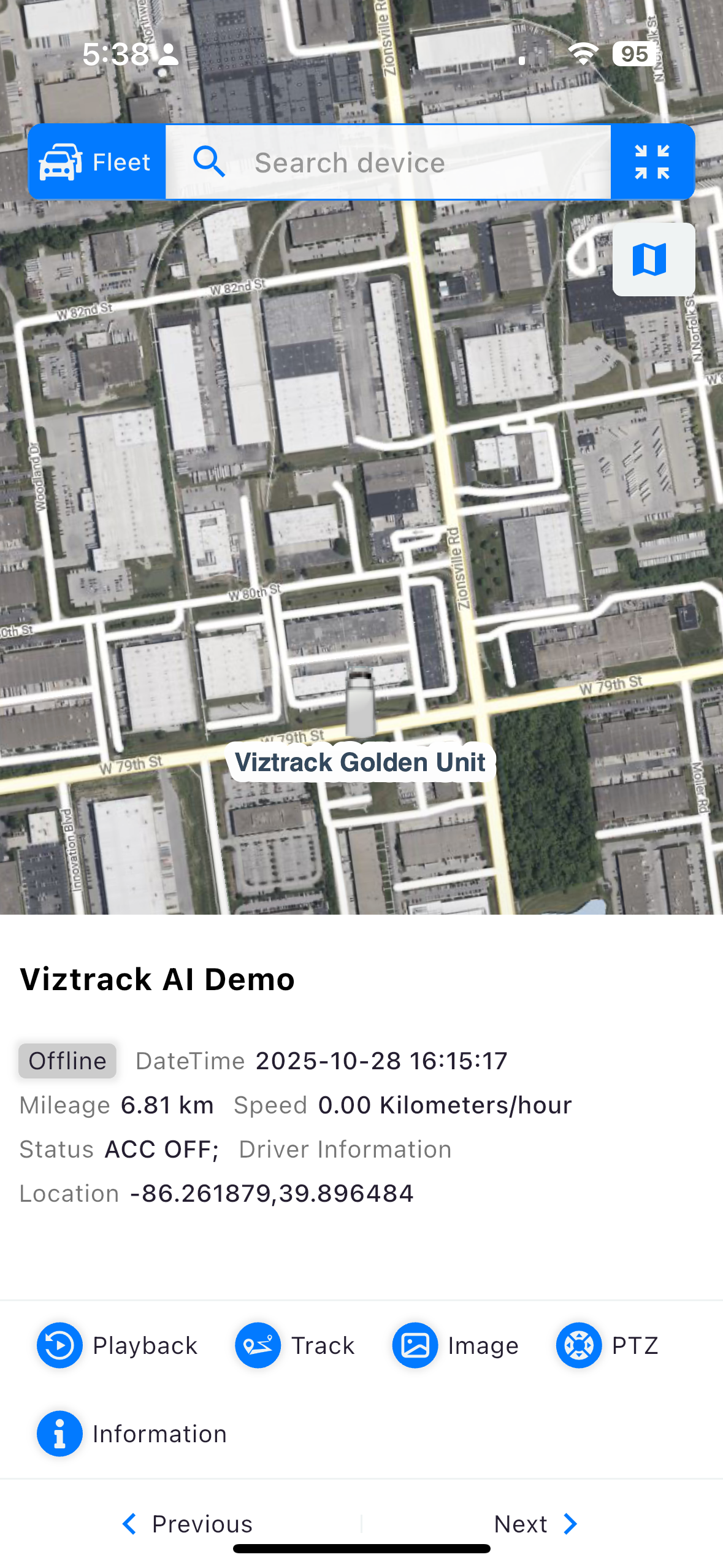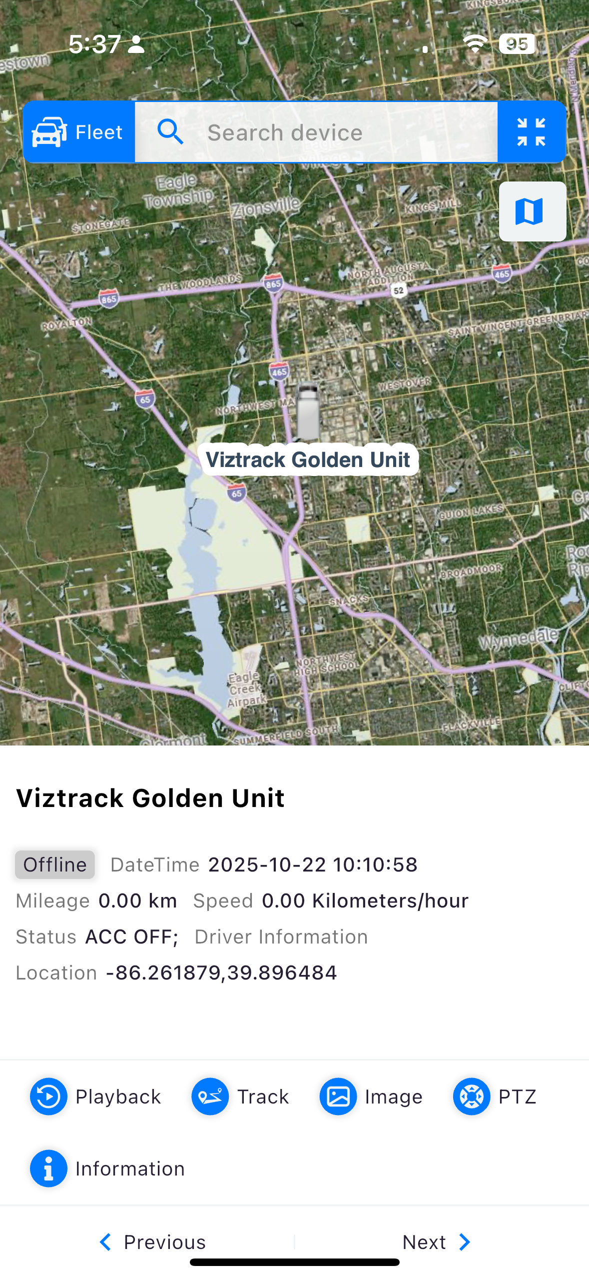 - If you select multiple units, you can switch between vehicles by tapping the Previous and Next arrows.