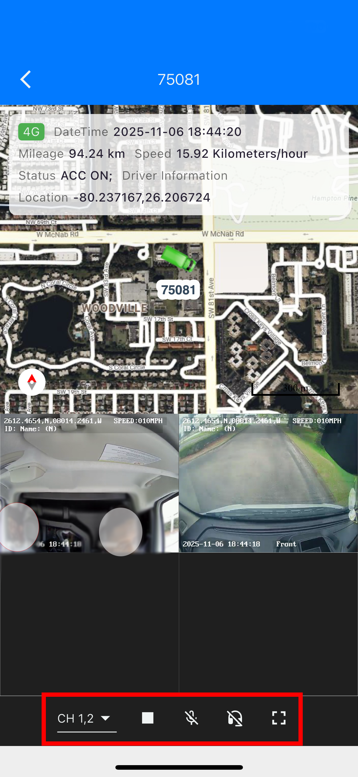 - Real-time camera feeds (such as front, rear, or in-cabin views).