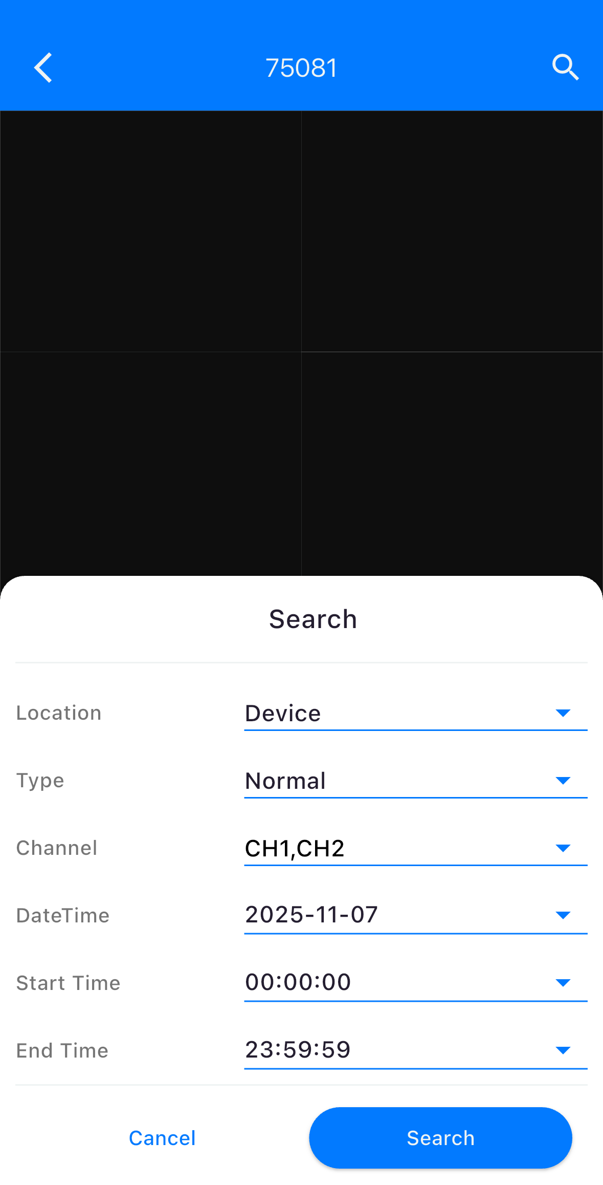 - Location – Choose where to search videos from (Device, Alarm Server, or Download Server).
