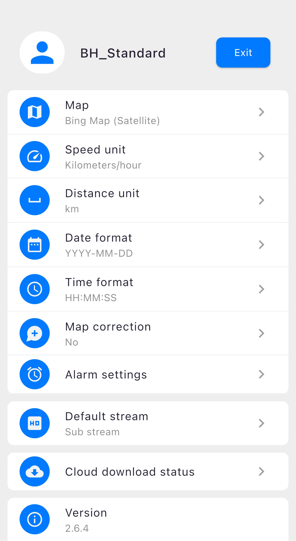 User Identification: Displays the current user profile, BH_Standard, with an Exit button to log out.